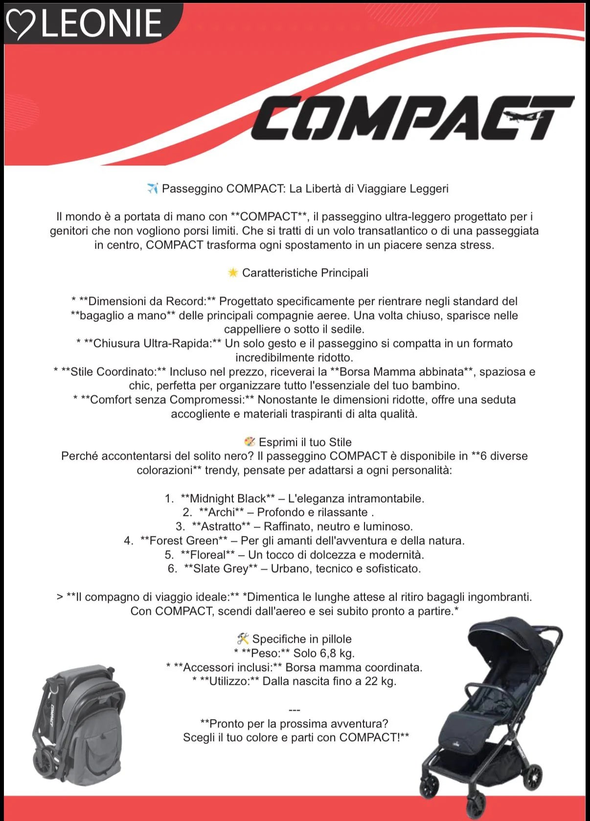 Il mondo è a portata di mano con *COMPACT*, il passeggino ultra-leggero progettato per i
