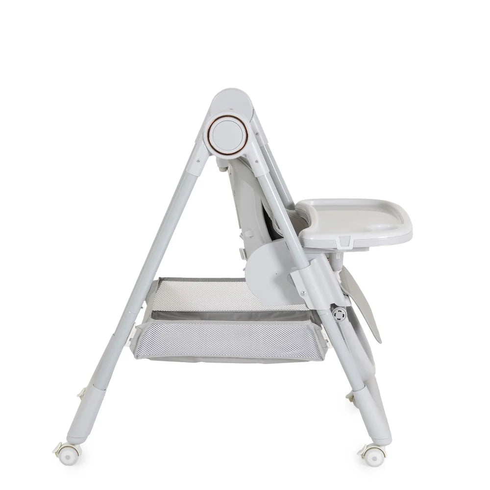 Il seggiolone Surprise è una soluzione completa per l'alimentazione, che include cuscino, bavaglino, ciotola, cucchiaio e forchetta. È dotato di un doppio vassoio con 3 posizioni, 7 livelli di altezza, 5 angoli di reclinazione e un poggiapiedi regolabile in 3 posizioni. Il seggiolone è dotato di un cestello portaoggetti in pelle con base rigida, 4 ruote in silicone con freno ed è realizzato con materiali facili da pulire. Compatto e funzionale, ideale per l'uso quotidiano.