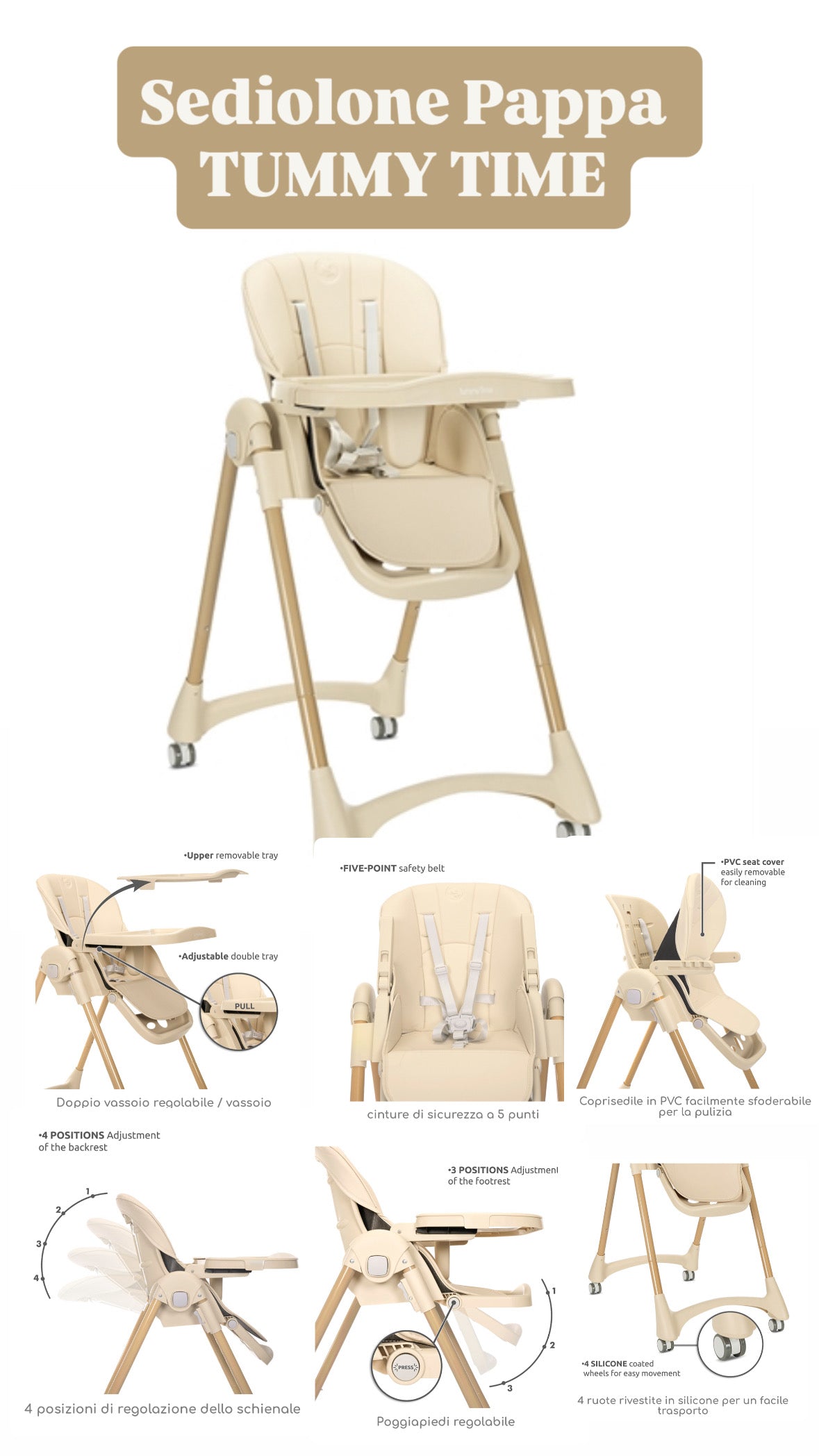 - 3 posizioni di regolazione del piano d'appoggio